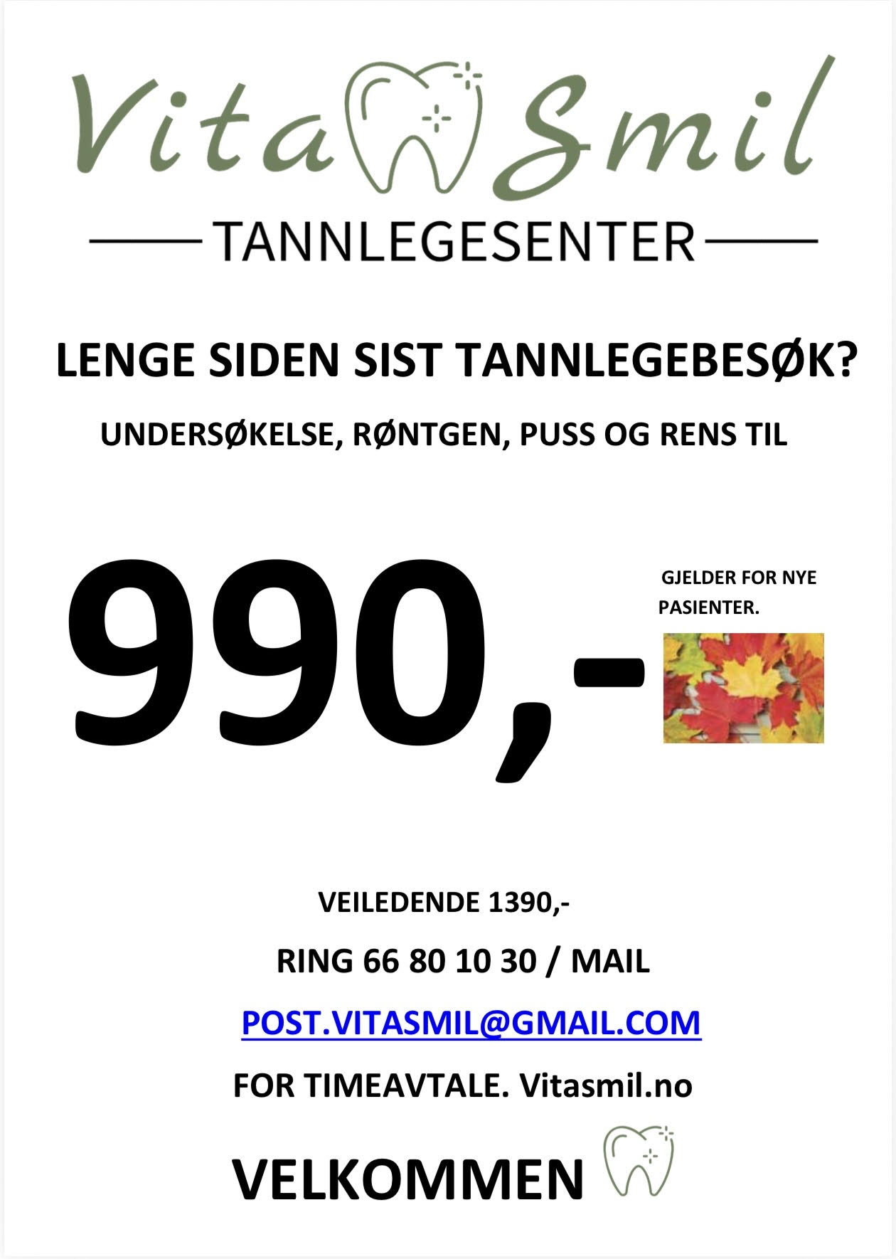 Vita Smil Tannlegesenter – Kolbotn, Norge. Profesjonelle tannleger tilbyr smertefri behandling, moderne teknologi og rask timebestilling. Vi tar vare på ditt smil og din tannhelse.